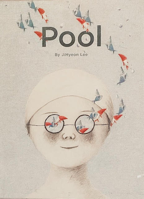 Pool is a fantastical story about diving into friendship despite fear. A child arrives at an empty pool, looking unsure, and is left feeling trepidatious when a crowd of rowdy swimmers arrives and takes over the pool. After hanging back, the child finally dives in, finds a kindred spirit below the hubbub, and together they enter a previously unseen world of mythical creatures including a huge, hairy white whale. When the two leave the pool on the opposite side from which they arrived, they are smiling and have clearly left their fears behind. The use of blank space on the pages showing the pool keeps the reader focused on the main character’s facial expressions, and is a wonderful contrast to the full page illustrations that show the pairs’ underwater adventure. The linear story is easy to follow, even for young readers.