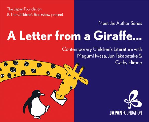 The event is in partnership with the Japan Foundation and The Children’s Bookshow, a national tour of writers and illustrators featured last week on the #WorldKidLitMonth blog. They’re talking Yours Sincerely, Giraffe, a best-selling children’s book that’s sold over 40,000 copies worldwide.