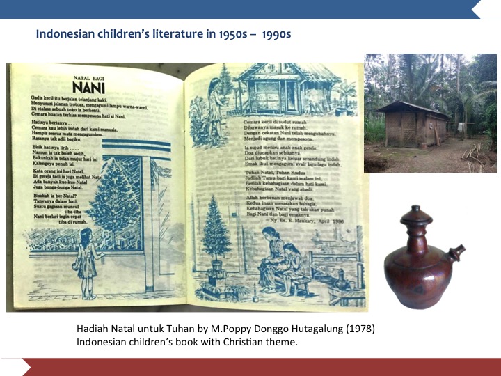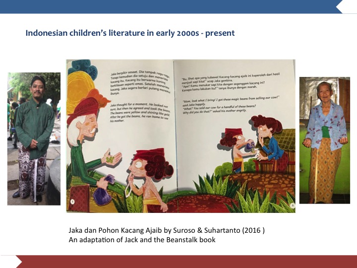 MCW: Murti’s books were published in the 2000s, which is categorised as being in the modern era in Indonesian children’s book timeline. We did not include them in our presentation, as we only showed Indonesian children’s book with a strong western cultural influence. However, not all Indonesian children’s books are influenced by foreign culture. To avoid any misunderstanding, at the end of our presentation we showed some examples of Indonesian children’s books that contain only the native culture. Murti’s books are one of these books.