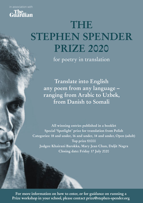 The closing date for the Stephen Spender Prize for Poetry in Translation is 17 July 2020.