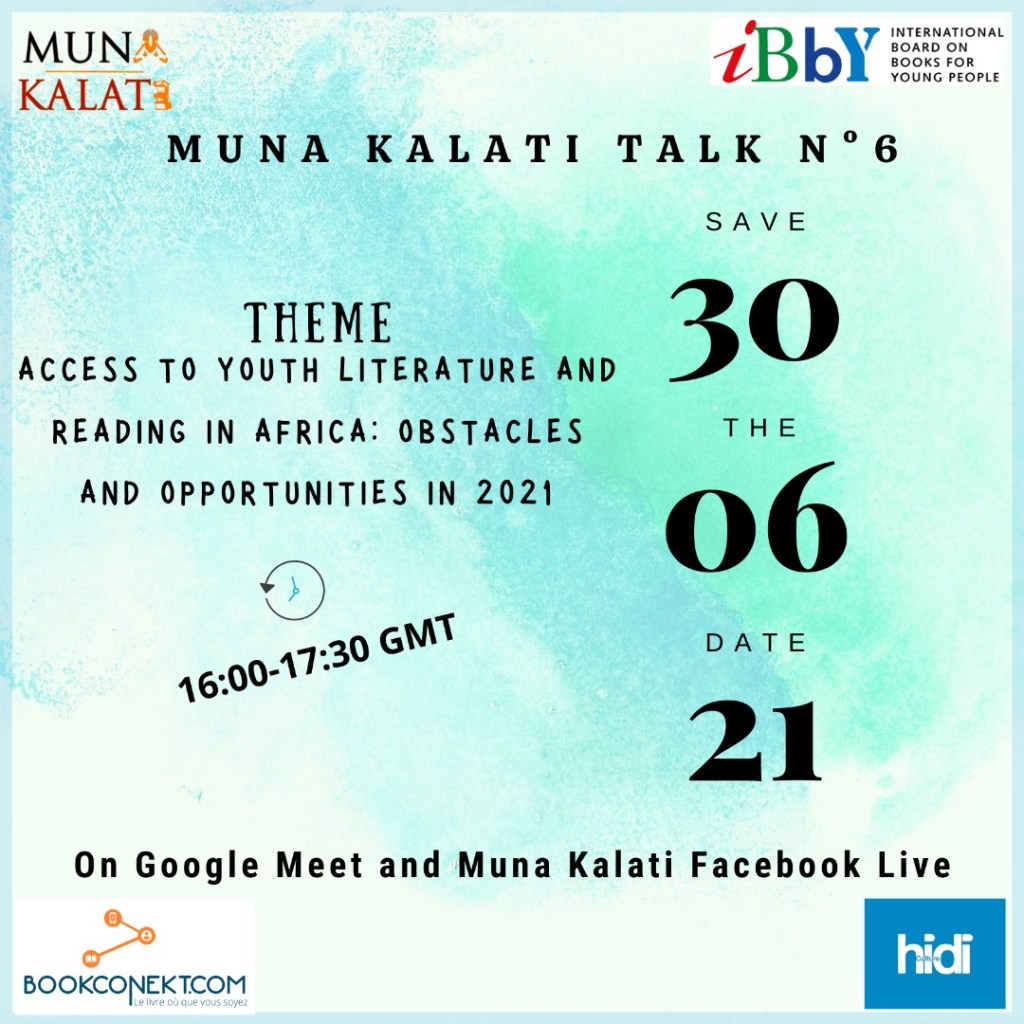 Access to Youth Literature and Reading in Africa: Obstacles and Opportunities in 2021. The 6th in the series of Muna Kalati Talks, featuring two panelists from Togo (Hidi Culture) and Benin (Book Conekt), and co-hosted by IBBY Cameroon