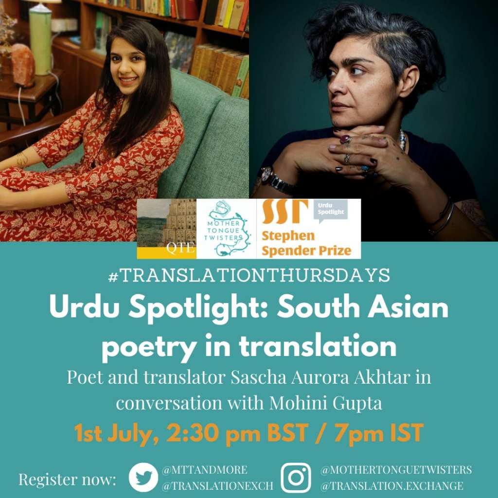 Poet and Urdu translator Sascha Aurora Akhtar in conversation with Mohini Gupta. Find out more about Sascha and the Stephen Spender Prize Urdu Spotlight here.