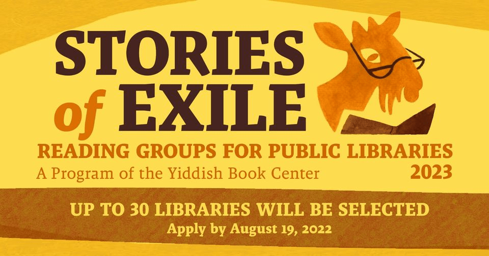 Applications are open for Yiddish Book Center’s “Stories of Exile” Reading Groups for USA Public Libraries. Apply for a chance to get 15 copies of books on the reading list and cost-covered travel to a workshop at the Yiddish Book Center in beautiful Amherst, MA. Apply by August 19, 2022.