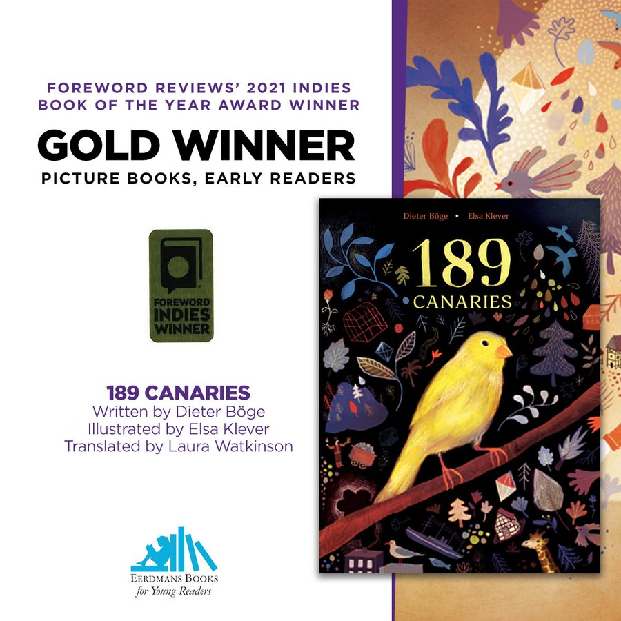 Congratulations to Dieter Böge, Elsa Kleve, Laura Watkinson and the team at Eerdmans Books for Younger Readers: 189 Canaries is a Foreword Reviews’ 2021 Indies Book of the Year Award Winner.