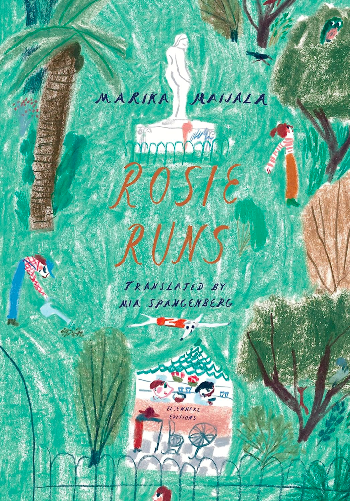 Inspired by a real-life dog that the author’s friend rescued from ill treatment in England and brought to Finland, Rosie Runs whisks us aboard one greyhound’s journey of escape. Marika Maijala explains in this tour of her studio that her books are often concerned with the idea of kindness; Rosie’s adventures as she hurtles away from the mechanical monotony and exhaustion of the racetrack are rendered in lively images that immediately evoke sympathy. The gorgeous artwork also serves as an invitation to explore (or revisit) the pleasure of drawing with crayons! With Rosie as our guide, the narrative naturally goes beyond the visual: the scents and sounds of the greyhounds’ journey make this lovely book even more appealing. I also enjoyed reading the author’s and translator’s perspectives at the end.