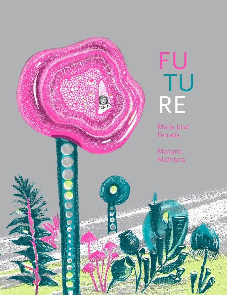 Future is a book filled with poetry, big illustrations, big questions, and a few robots and rocket ships. But all in all, it’s an abstract book with silvery pages and mysterious imagery conjured up by Mexican illustrator Mariana Alcántara.