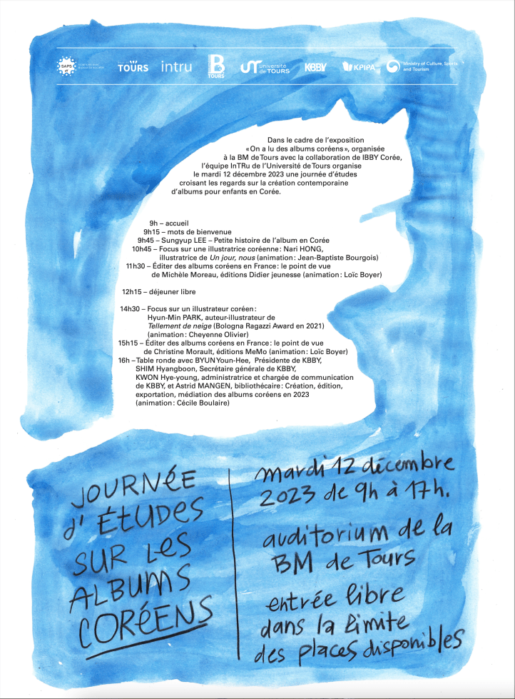 A group of French librarians, researchers and illustrators received a donation of contemporary Korean picture books by KBBY, which were not translated into French. They took the opportunity to approach the books as children would ̶-through the illustrations. They created a reading club and met throughout the year to exchange ideas and thoughts about the illustrations, stories and themes, with unexpected results that led to an extraordinary exhibition at the Municipal Tours Library.
