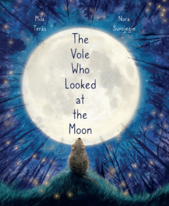 The Vole Who Looked at the Moon written by Mila Teras, illustrated by Nora Surojegin, translated from Finnish (Finland) by Lola Rogers. Spinning Wheel Stories