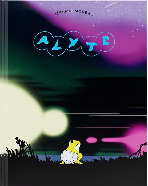 Alyte follows the fragile beginnings of a young tadpole left to navigate the natural world alone. We follow his turbulent journey as he meets new friends, each teaching him something about life. A note to readers explains that the original French onomatopoeia has been kept for “graphic and aesthetic reasons” – a choice that neatly introduces readers to translated graphic storytelling.
