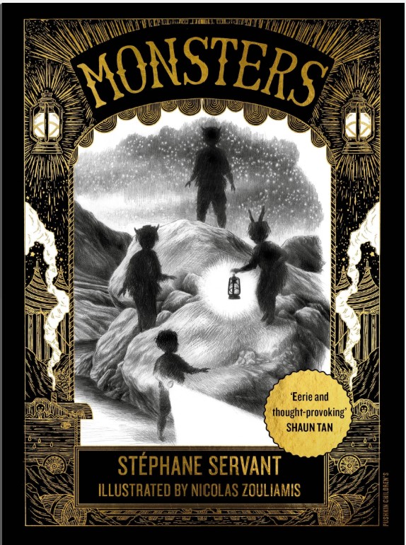 Winner of the Prix Sorcières and new from Pushkin Press, Monsters is a striking addition to translated middle-grade fiction. Zouliamis’s hauntingly beautiful black-and-white illustrations immediately transport the reader to an eerie village “at the end of the world.” Here we meet Otto, the main character and narrator. Much of the story unfolds inside Otto’s thoughts as he prepares himself to meet the “Monster of Dreams,” brought to the village by a travelling circus. Otto’s narration creates intimacy with the reader and enables them to keep up without having to track dense dialogue. The sentences are mostly short: “Here it is. Beneath this cloth. Inside this cage. You cannot see it. Not yet. But it is right here.”
